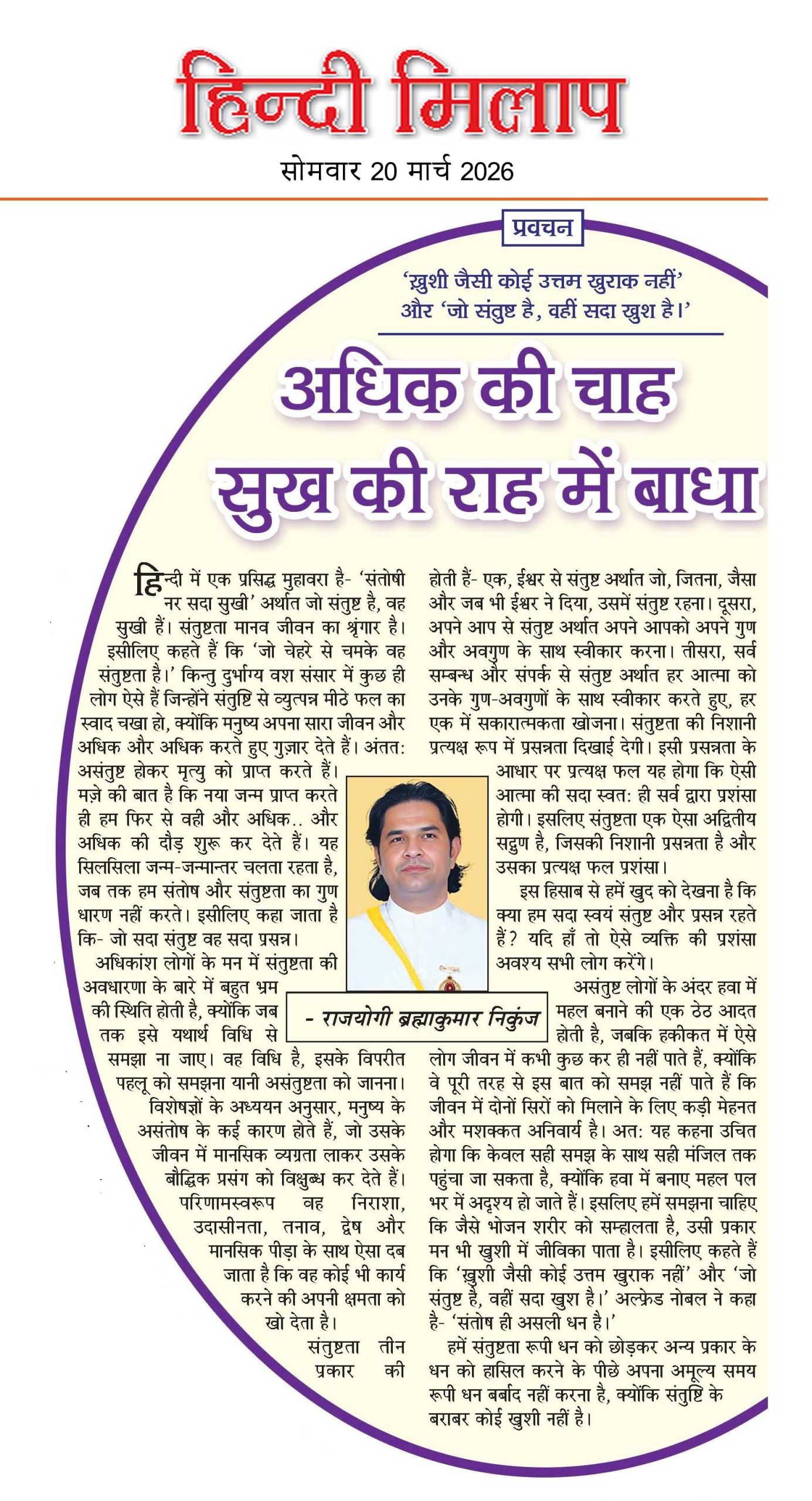 अधिक की चाह सुख की रह में बाधा – हिन्दी मिलाप