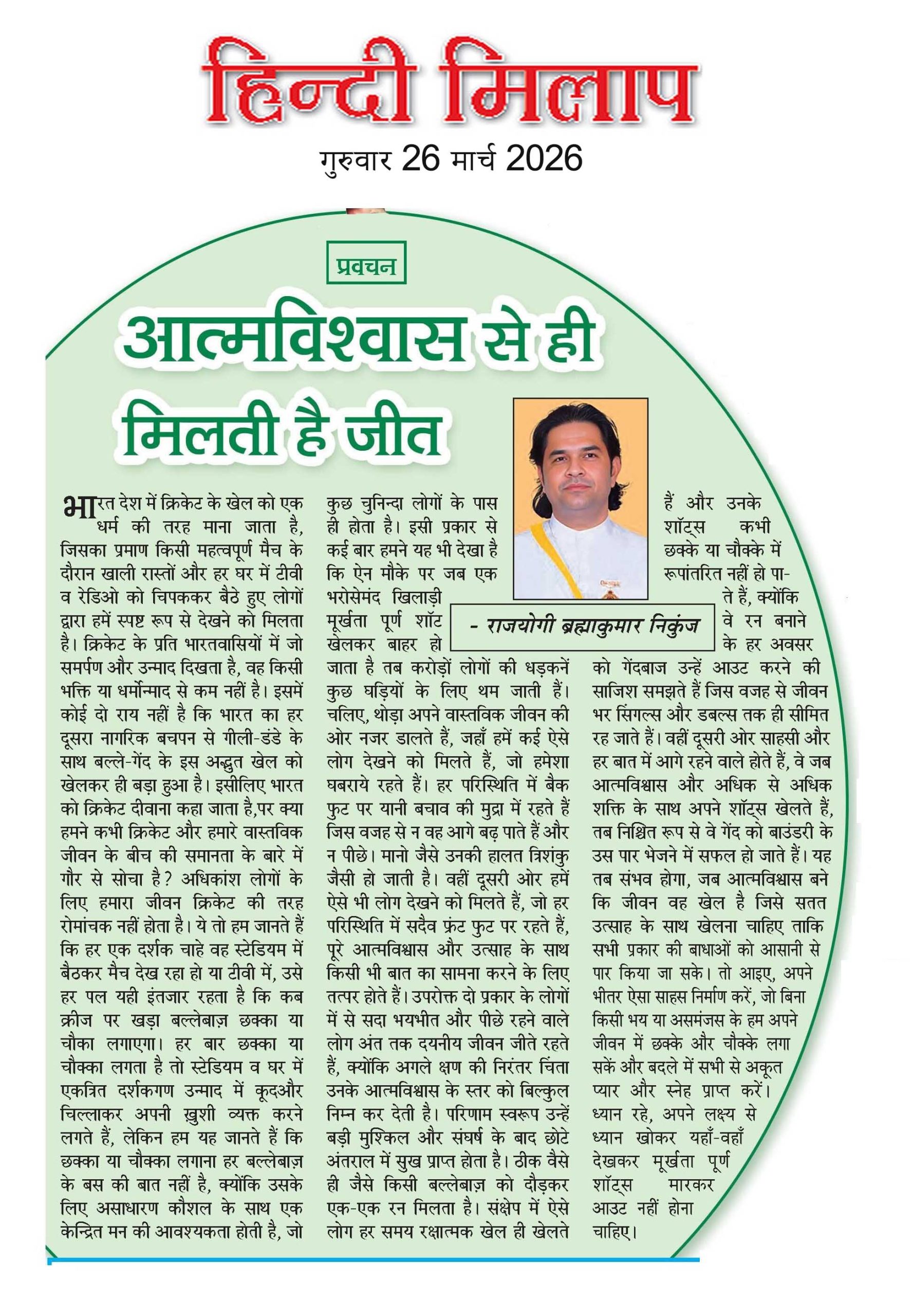 आत्मविश्वास से ही मिलती है जीत – हिन्दी मिलाप