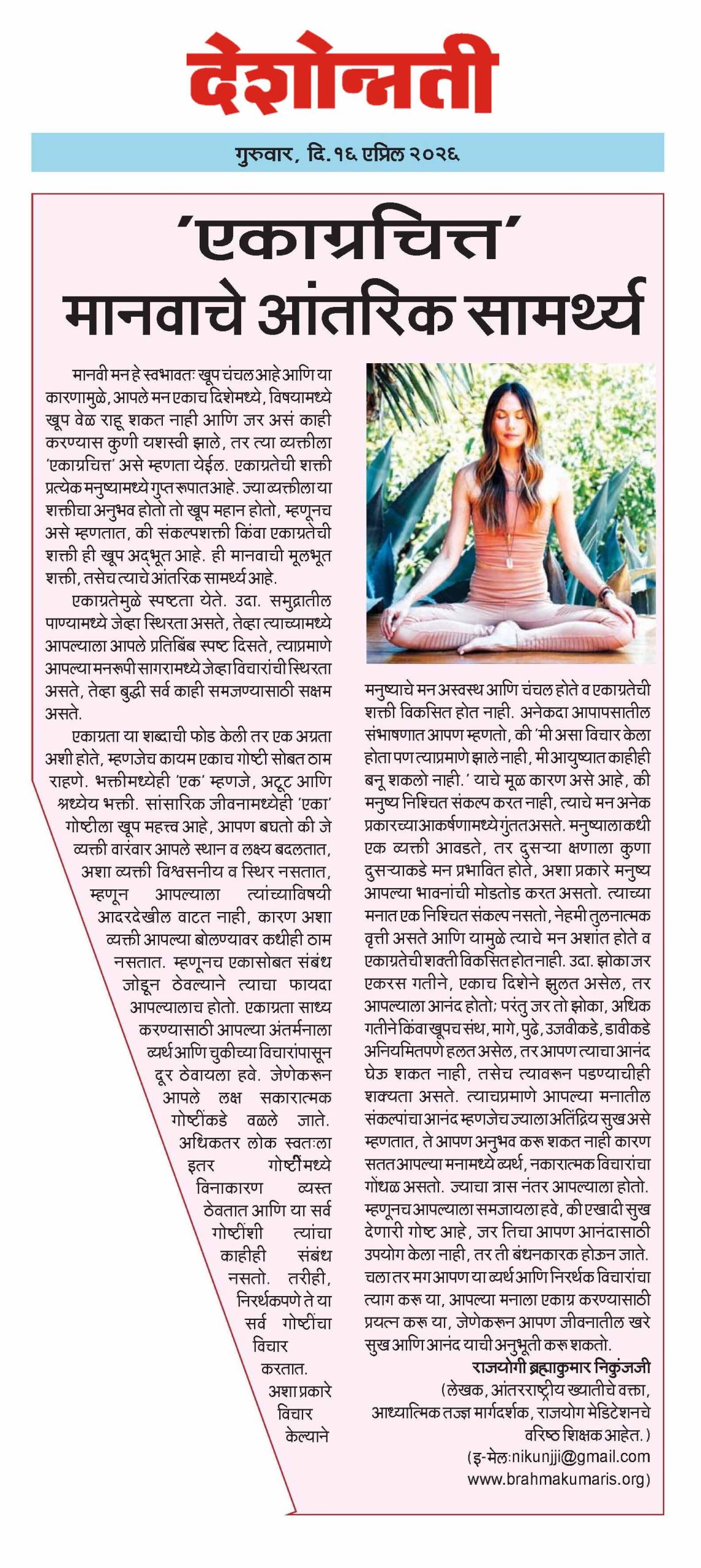 एकाग्रचित्त’ मानवाचे आंतरिक सामर्थ्य – देशोन्नती