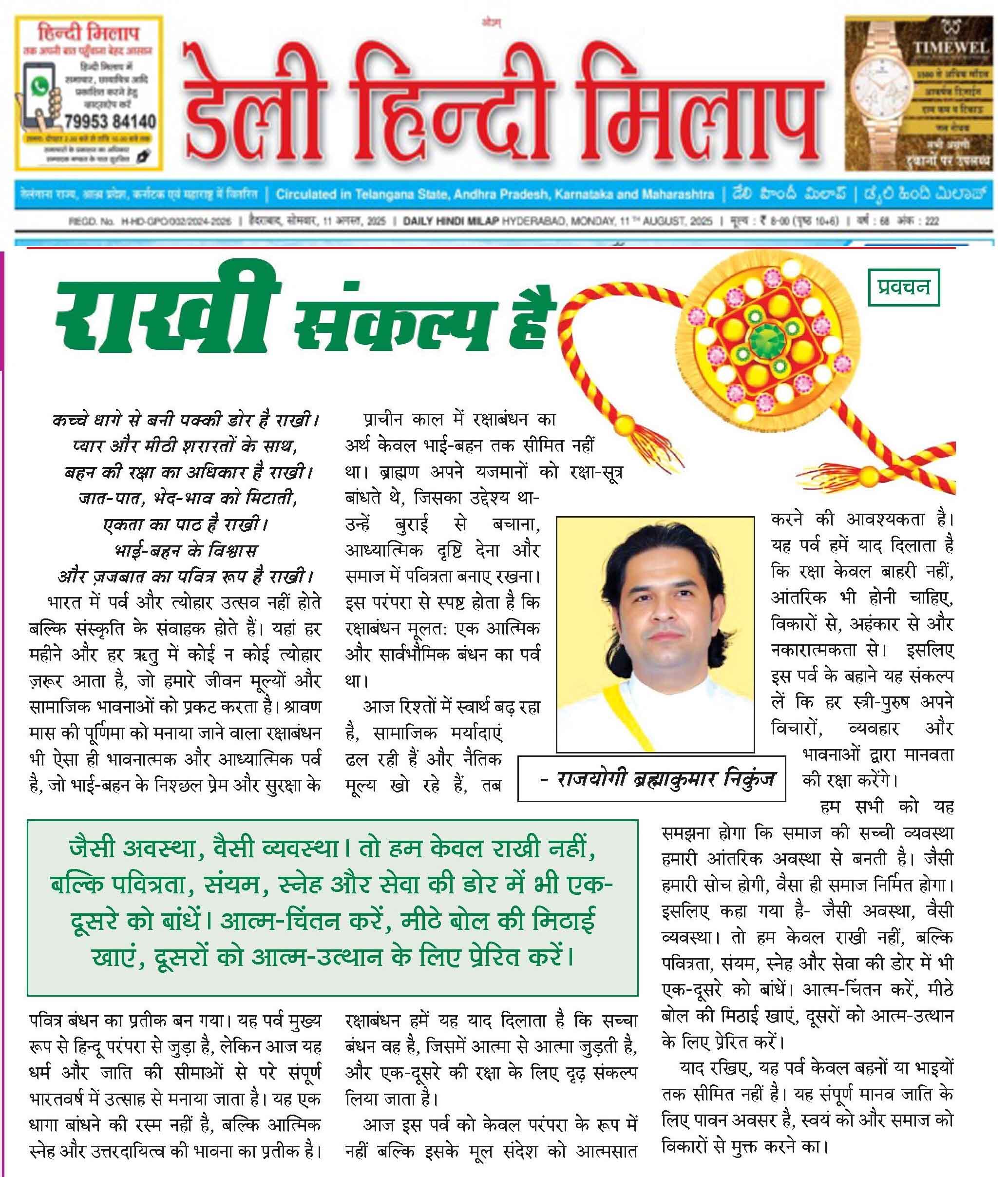 राखी संकल्प है -डेली हिन्दी मिलाप