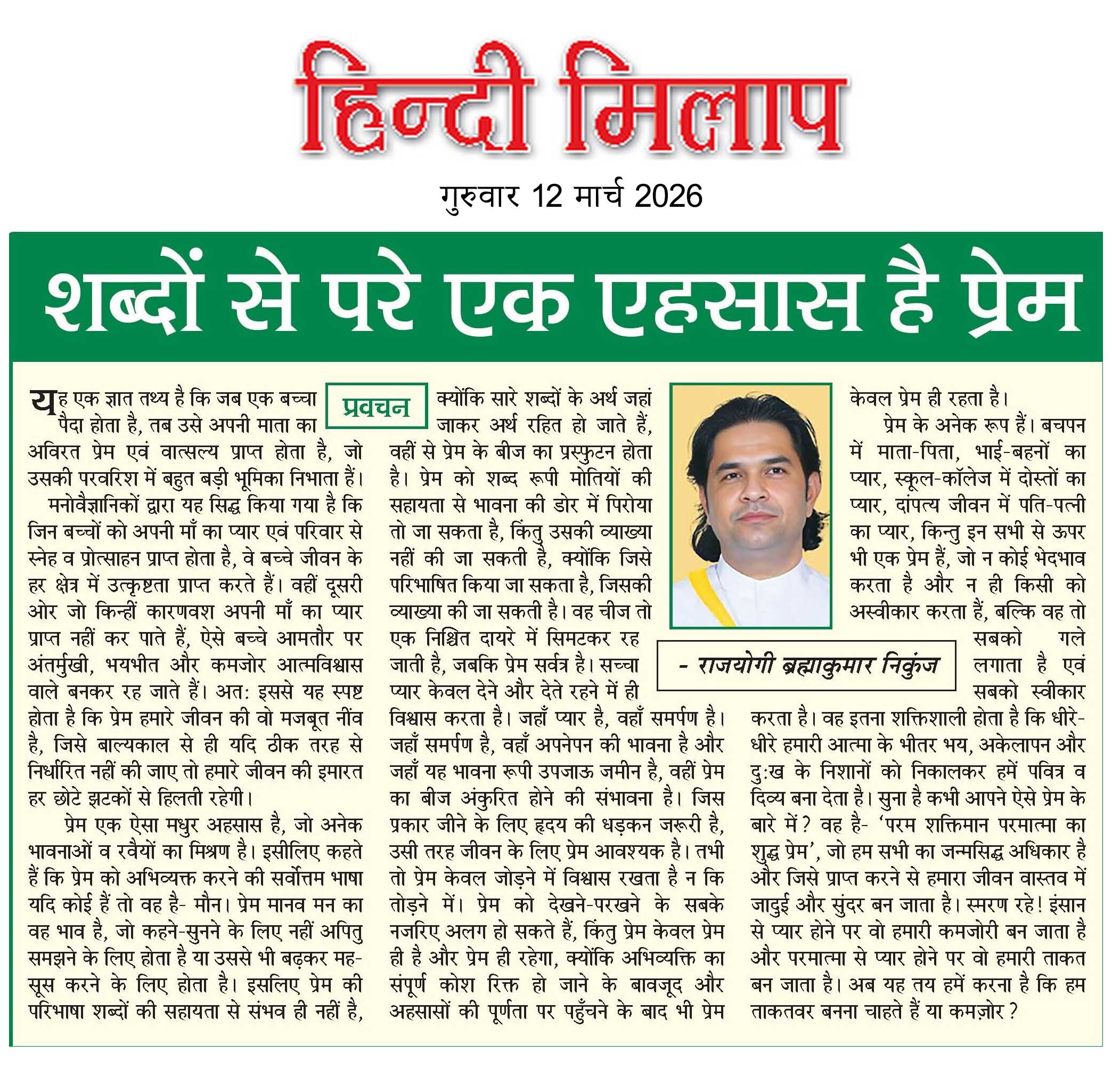 शब्दों से परे एक एहसास है प्रेम – डेली हिन्दी मिलाप – 12th March 2026
