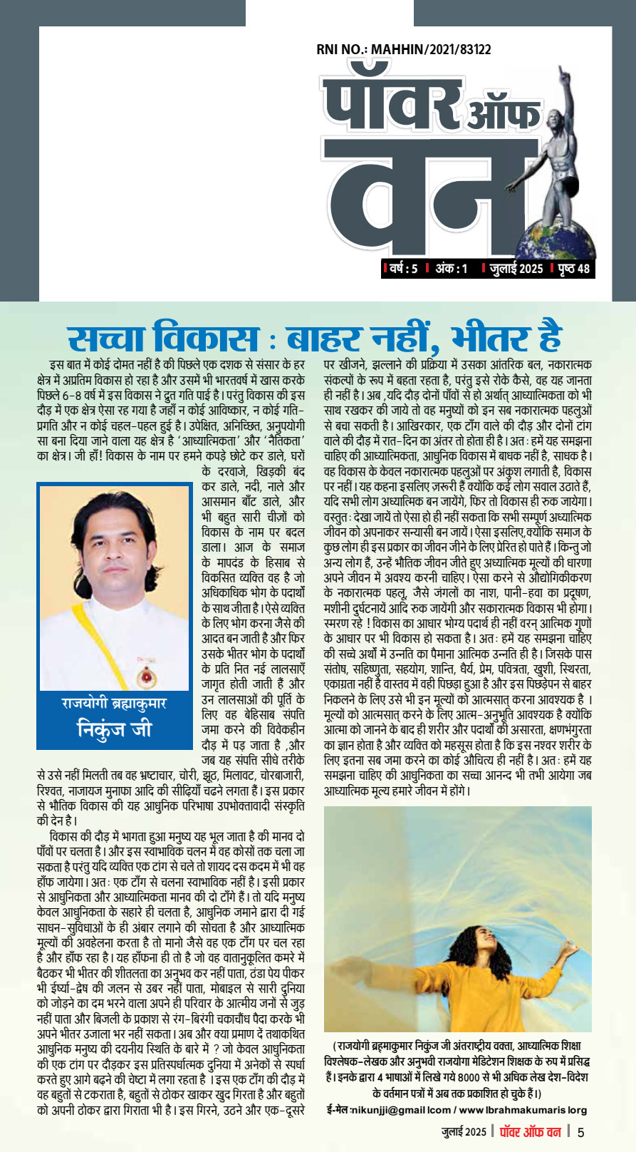 सच्चा विकास, बाहर नहीं , भीतर है – पावर ऑफ वन