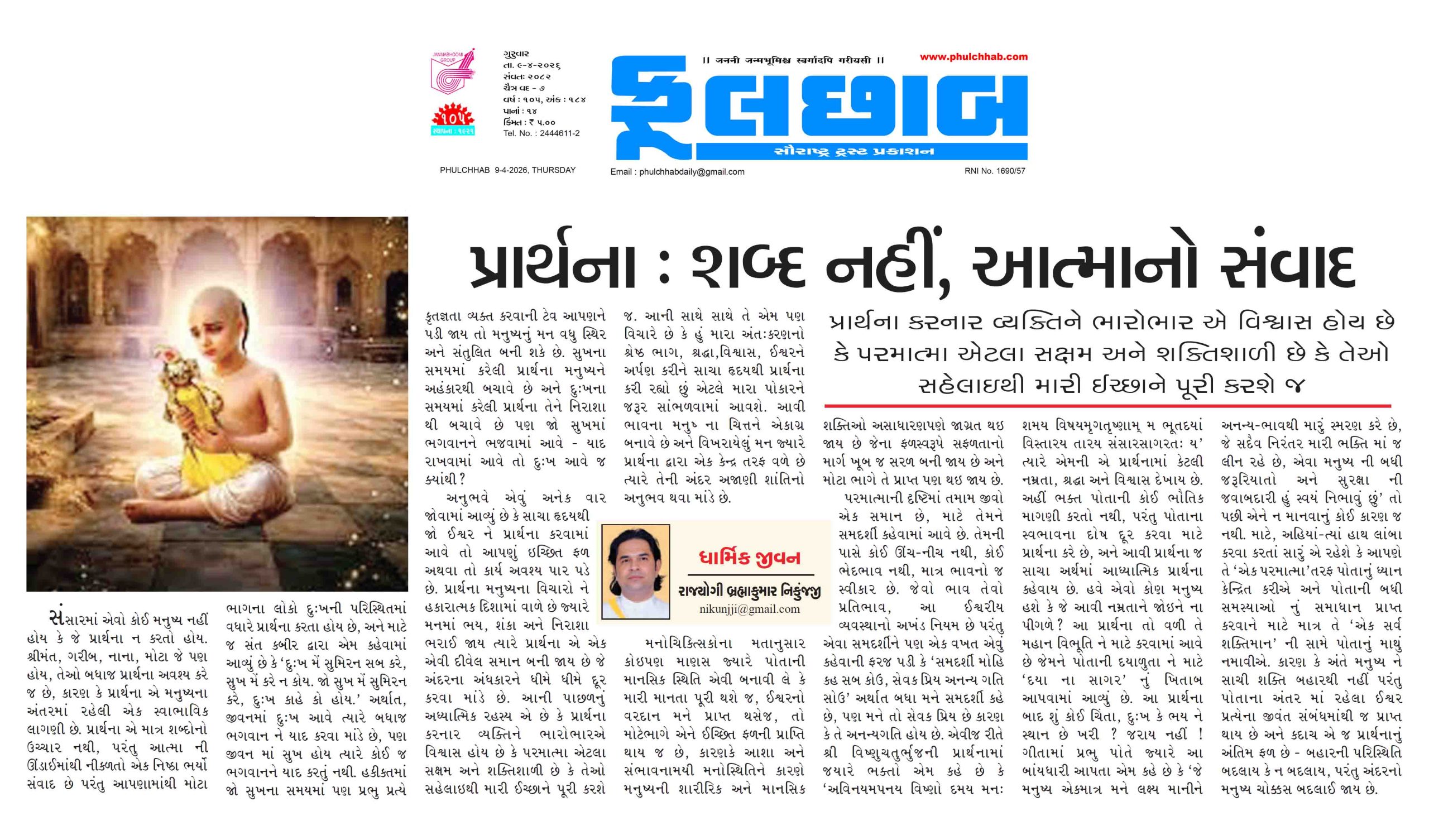પ્રાર્થના : શબ્દ નહીં, આત્માનો સંવાદ -ફૂલછાબ
