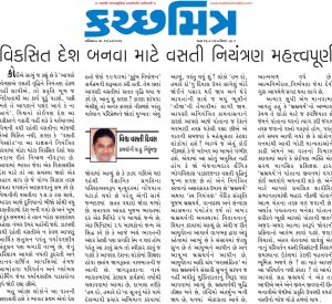 વિકસિત દેશ બનવા માટે વસતી નિયંત્રણ મહત્વપૂર્ણ-કચ્છમિત્ર