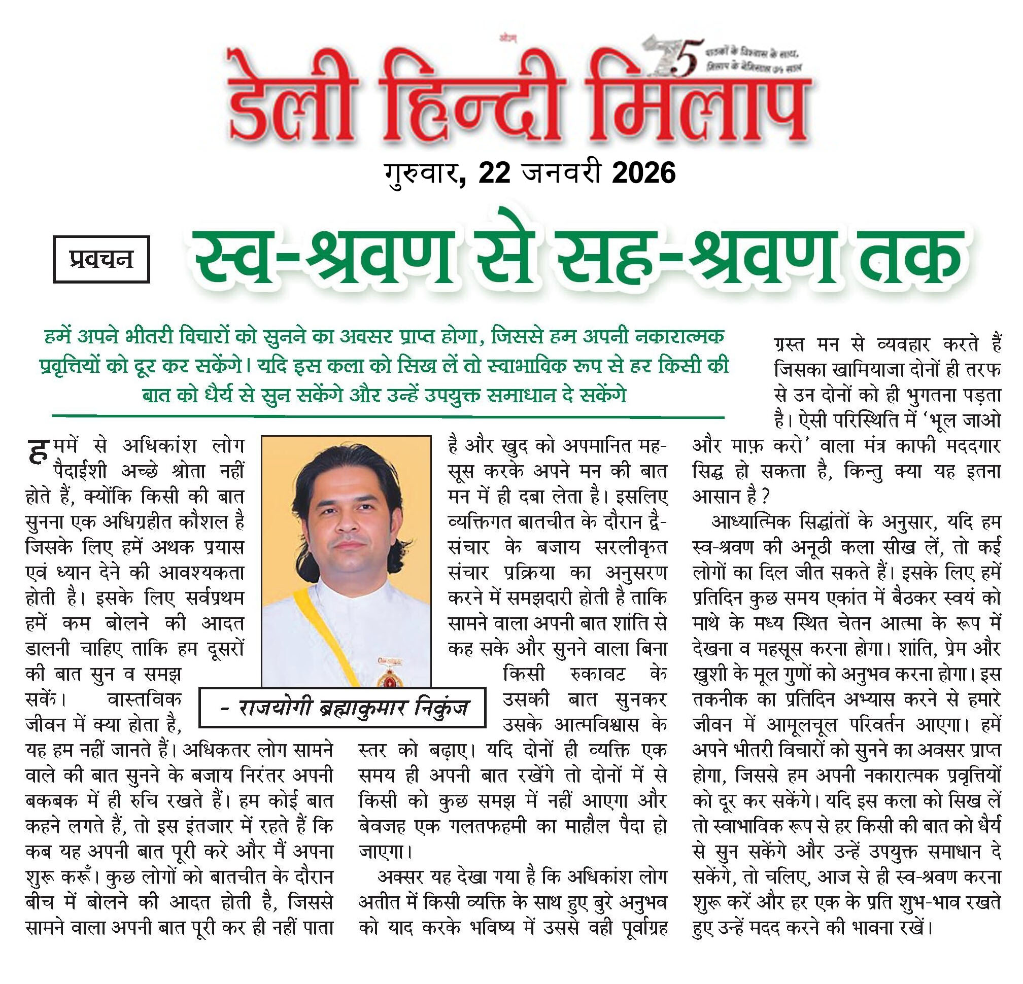 स्व-श्रवण से सह-श्रवण तक – डेली हिन्दी मिलाप