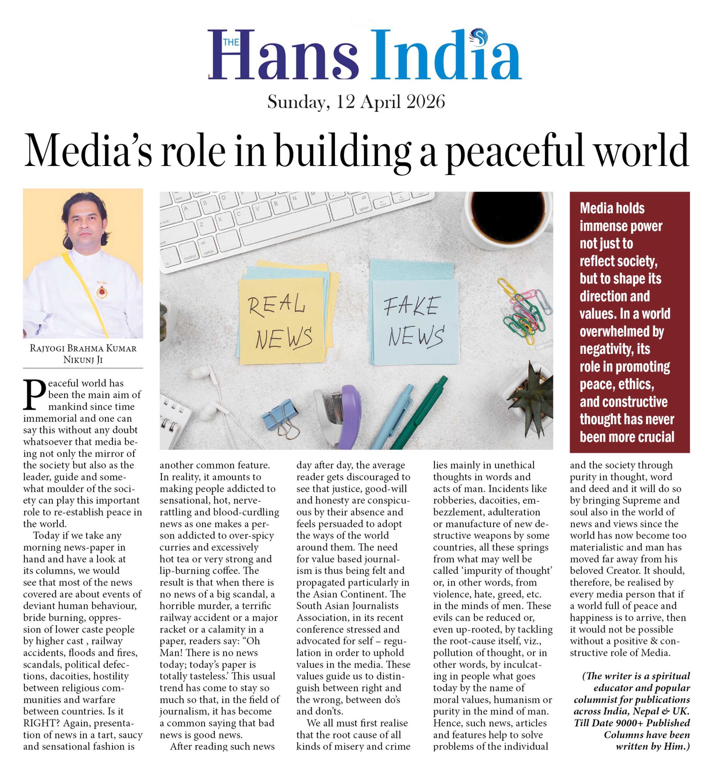 Media’s role in building a peaceful world -Hans India