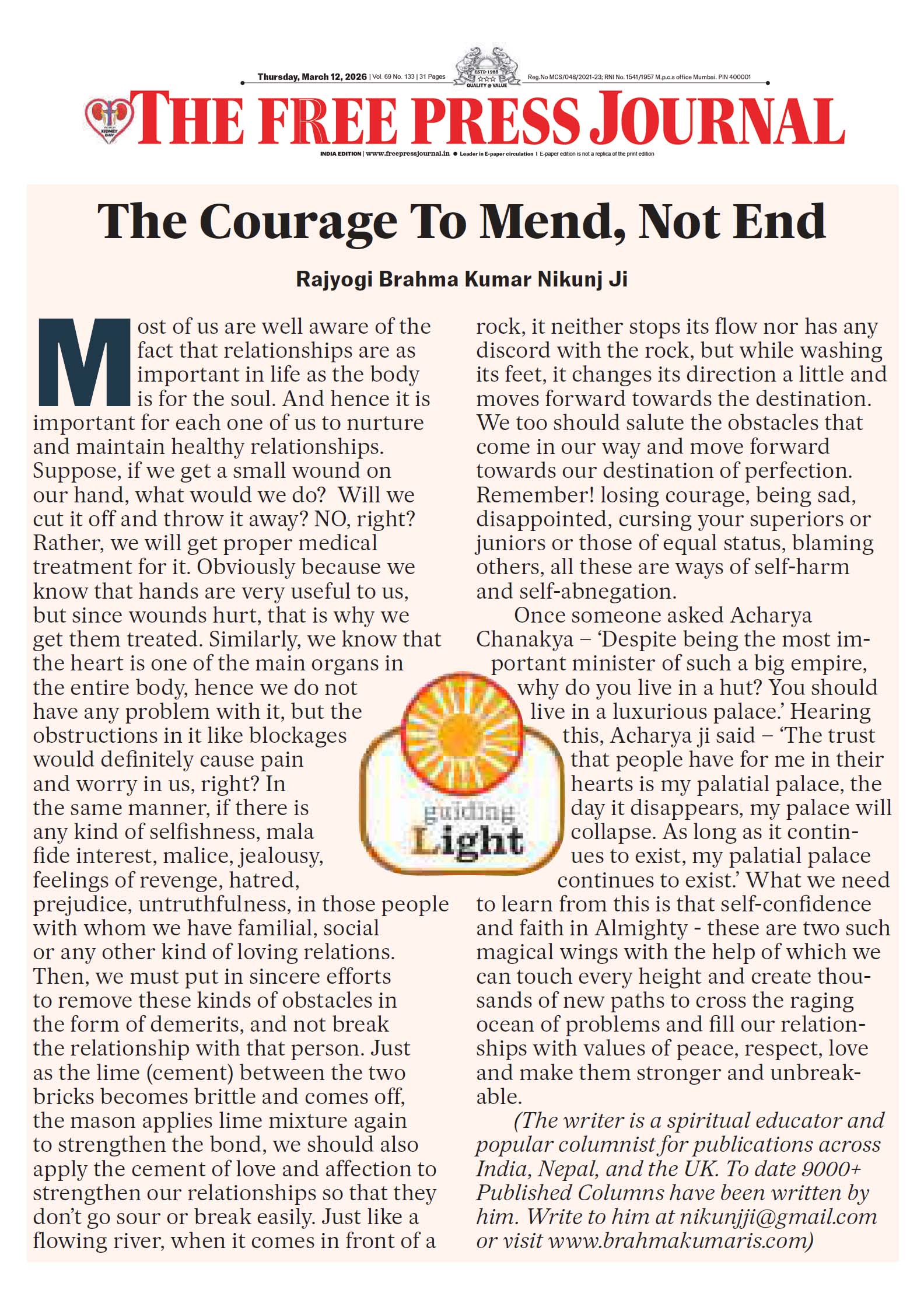 The Courage to Mend, Not End – Free Press Journal – 12th March 2026